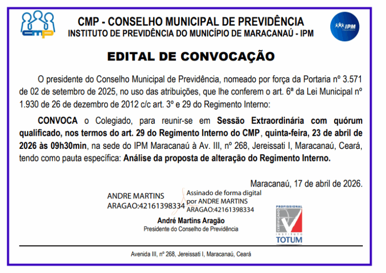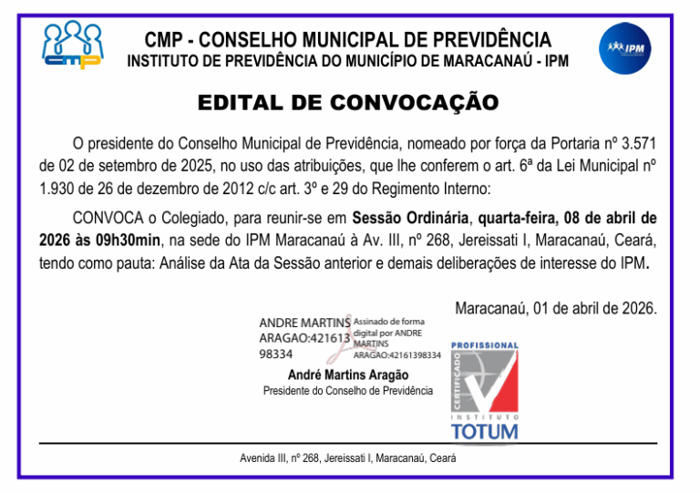 Últimas notícias Conselho Municipal de Previdência Edital de Convocação 10 de abril de 2026 Leia mais → Aposentados AVISO IMPORTANTE AOS SEGURADOS DO IPM Informamos que a disponibilização dos Informes de Rendimentos para a Declaração do Imposto de Renda 2026 (ano-base 2025) encontra-se temporariamente… 20 de março de 2026 Leia mais → Sem categoria DIVULGAÇÃO DO CALENDÁRIO ANUAL DE PAGAMENTOS DOS BENEFÍCIOS APOSENTADORIAS E PENSÕES POR MORTE, DO ANO DE 2026 DIVULGAÇÃO DO CALENDÁRIO ANUAL DE PAGAMENTOS DOS BENEFÍCIOS APOSENTADORIAS E PENSÕES POR MORTE, DO ANO DE 2026. 20 de janeiro de 2026 Leia mais → Conselho Municipal de Previdência REUNIÃO DO CONSELHO DE PREVIDÊNCIA Na manhã desta quarta-feira, 14 de janeiro, aconteceu a primeira sessão ordinária do Conselho Municipal de Previdência do IPM –… 15 de janeiro de 2026 Leia mais → Comitê de instimentos Hoje os membros do Comitê de Investimentos tiveram a primeira reunião ordinária de 2026, onde participaram de uma Live com a Assessoria LEMA Investimentos e outros RPPS Hoje os membros do Comitê de Investimentos tiveram a primeira reunião ordinária de 2026, onde participaram de uma Live com… 8 de janeiro de 2026 Leia mais → Comitê de instimentos Hoje os membros do Comitê de Investimentos se reuniram para mais uma reunião ordinária,com a Assessoria LEMA Investimentos, participando excepcionalmente de forma on-line Hoje os membros do Comitê de Investimentos se reuniram para mais uma reunião ordinária,com a Assessoria LEMA Investimentos, participando excepcionalmente… 4 de novembro de 2025 Leia mais →